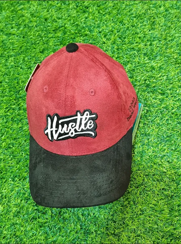 Trendy maroon cap with bold Hustle embroidery.
