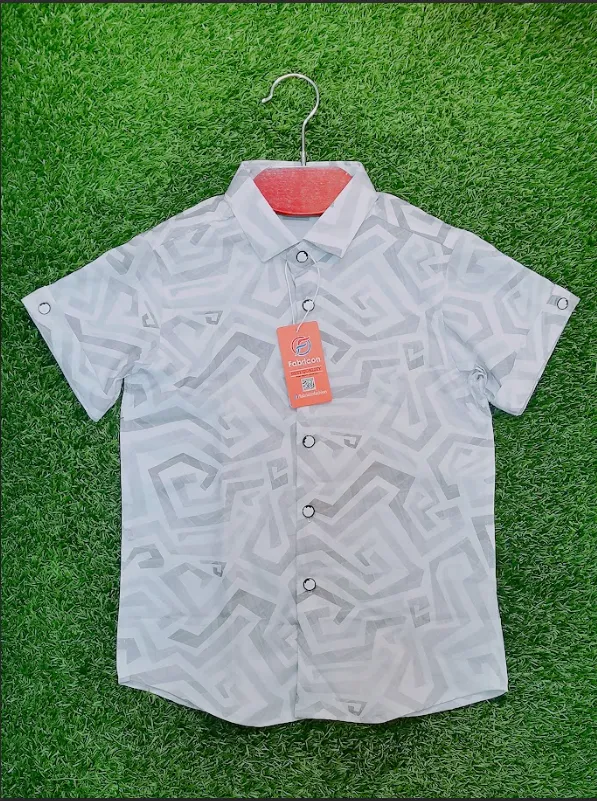 Modern light grey short shirt with designer pattern. Neat finishing and comfortable fabric make it perfect for regular use and small events.