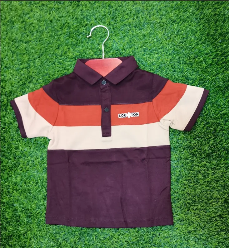 Trendy color block polo t-shirt with modern design. Comfortable fabric allows free movement for kids. Ideal for casual and semi-formal wear.
