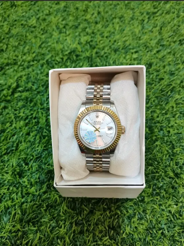 Clean and elegant white dial watch with silver strap. Suitable for office and formal wear. Comfortable fitting with premium look.